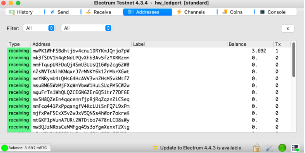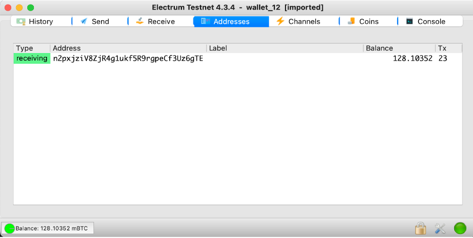 Step 8: Finally in Electrum go to “Addresses” tab and you can see your funds